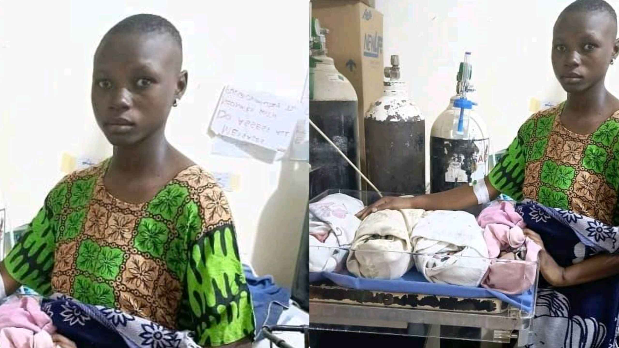 Nigerians are celebrating as a 16 years old girl miraculously gave birth to 4 children at once