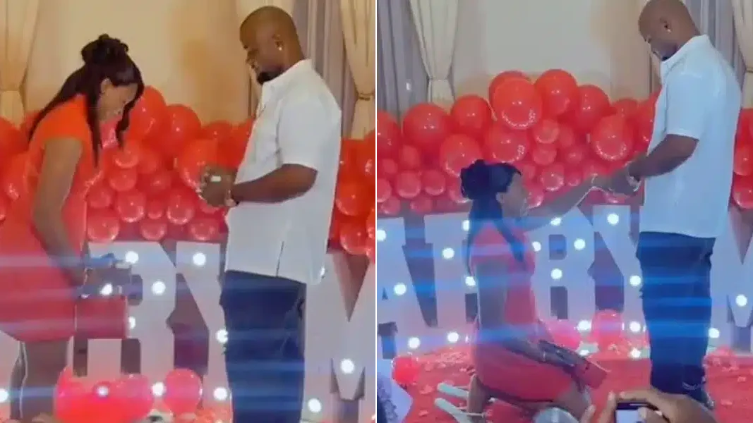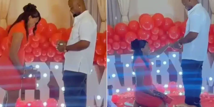 “He couldn’t even lift her up to wear the ring on her finger” Video of Nigerian lady kneeling before partner while he proposed to her went viral