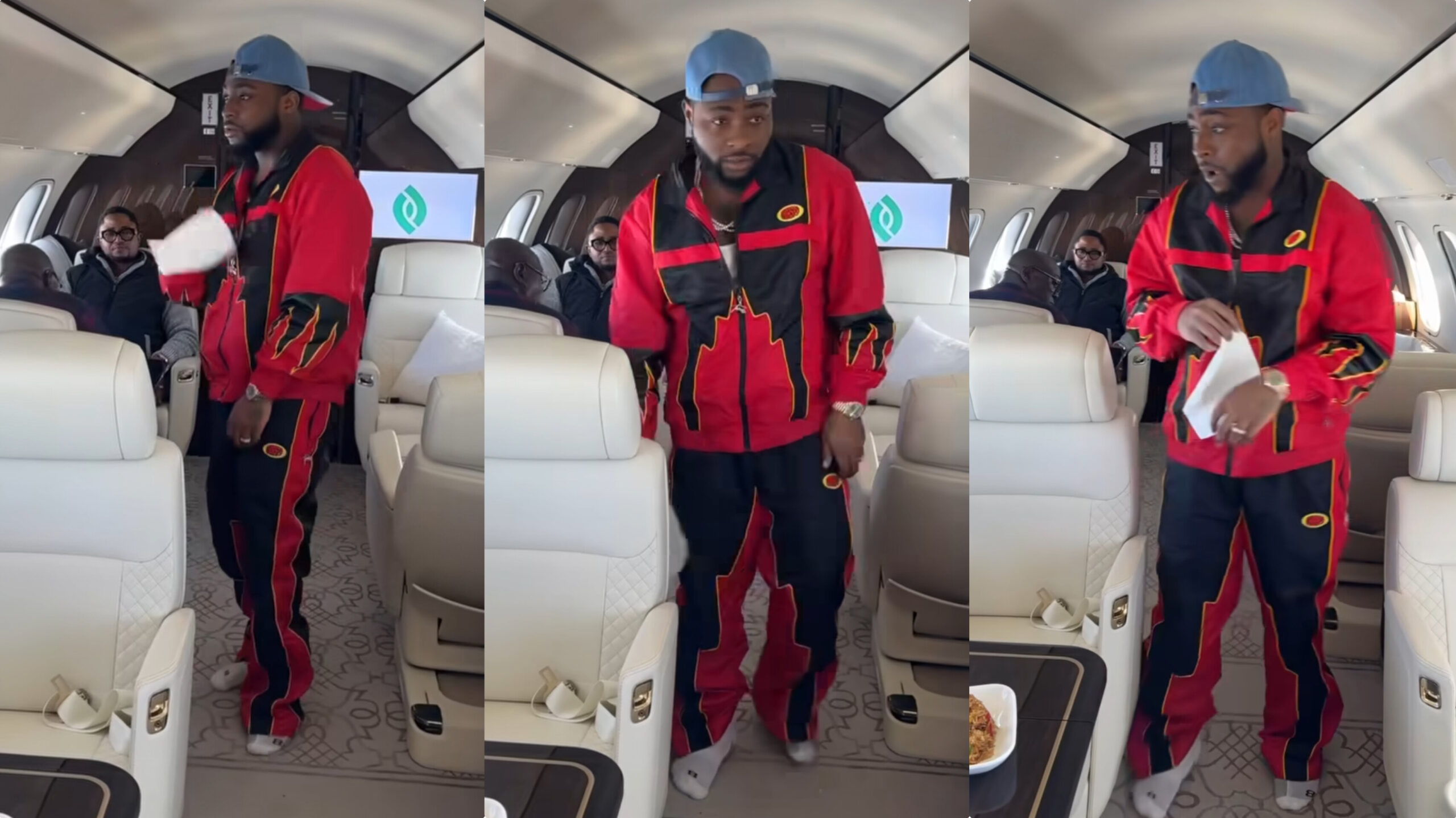 Popular Davido create a scene while flying in his private jet. Netizens are abuzz with reactions that handkerchiefs will start to gain popularity as Davido support thetrenchboy by joining the challenge.