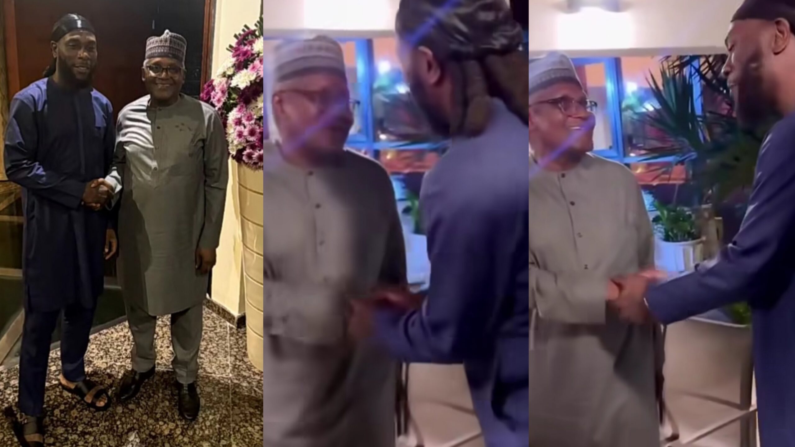 The video, which has been making the rounds on social media, shows Burna Boy and Dangote exchanging pleasantries and shaking hands. They were also seen sitting around a dinner table, suggesting that they had dined together.