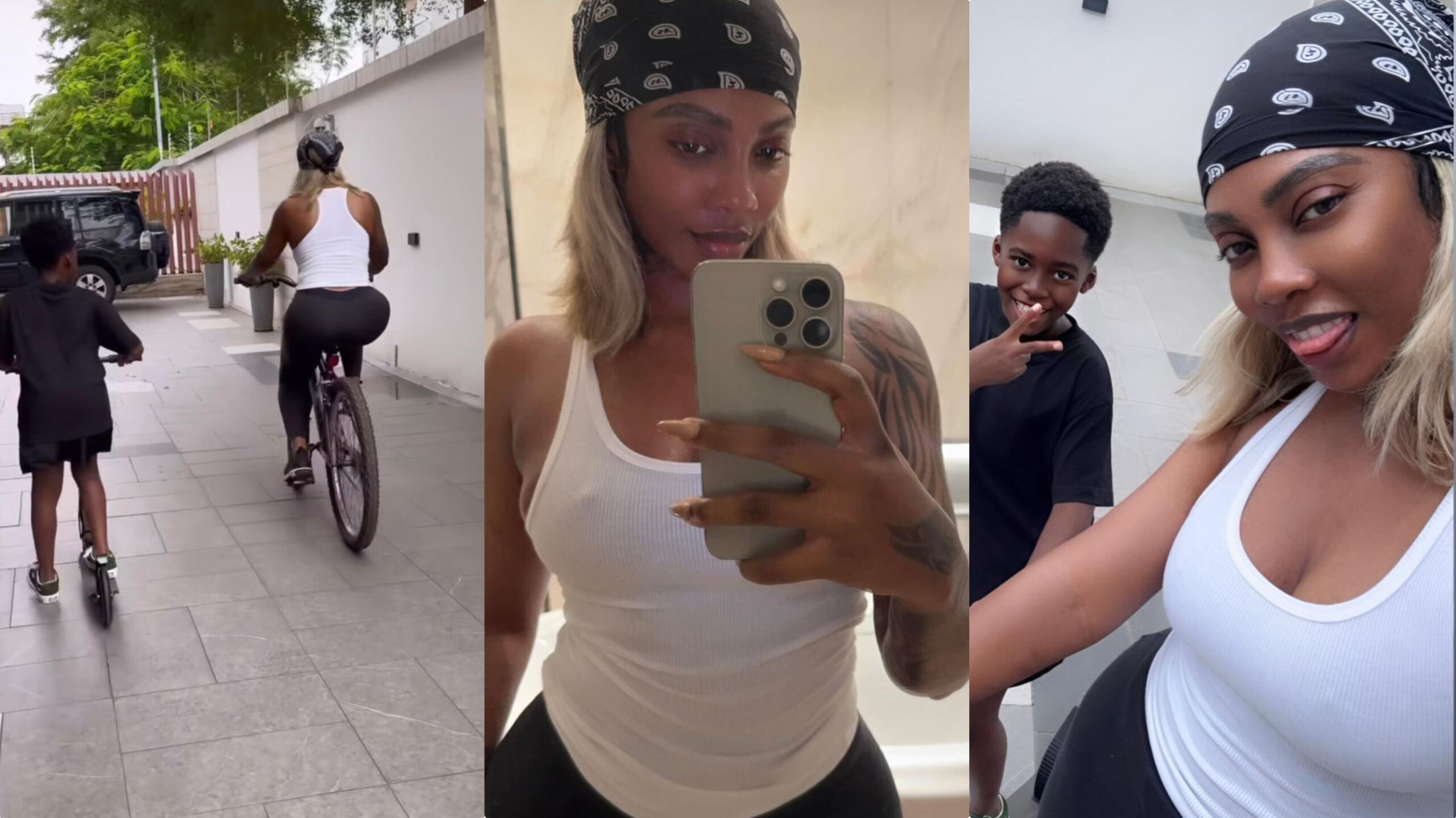 In the photos, both mother and son can be seen laughing, playing, and driving bicycle together, capturing moments of carefree happiness that Tiwa hinted she had missed for far too long.
