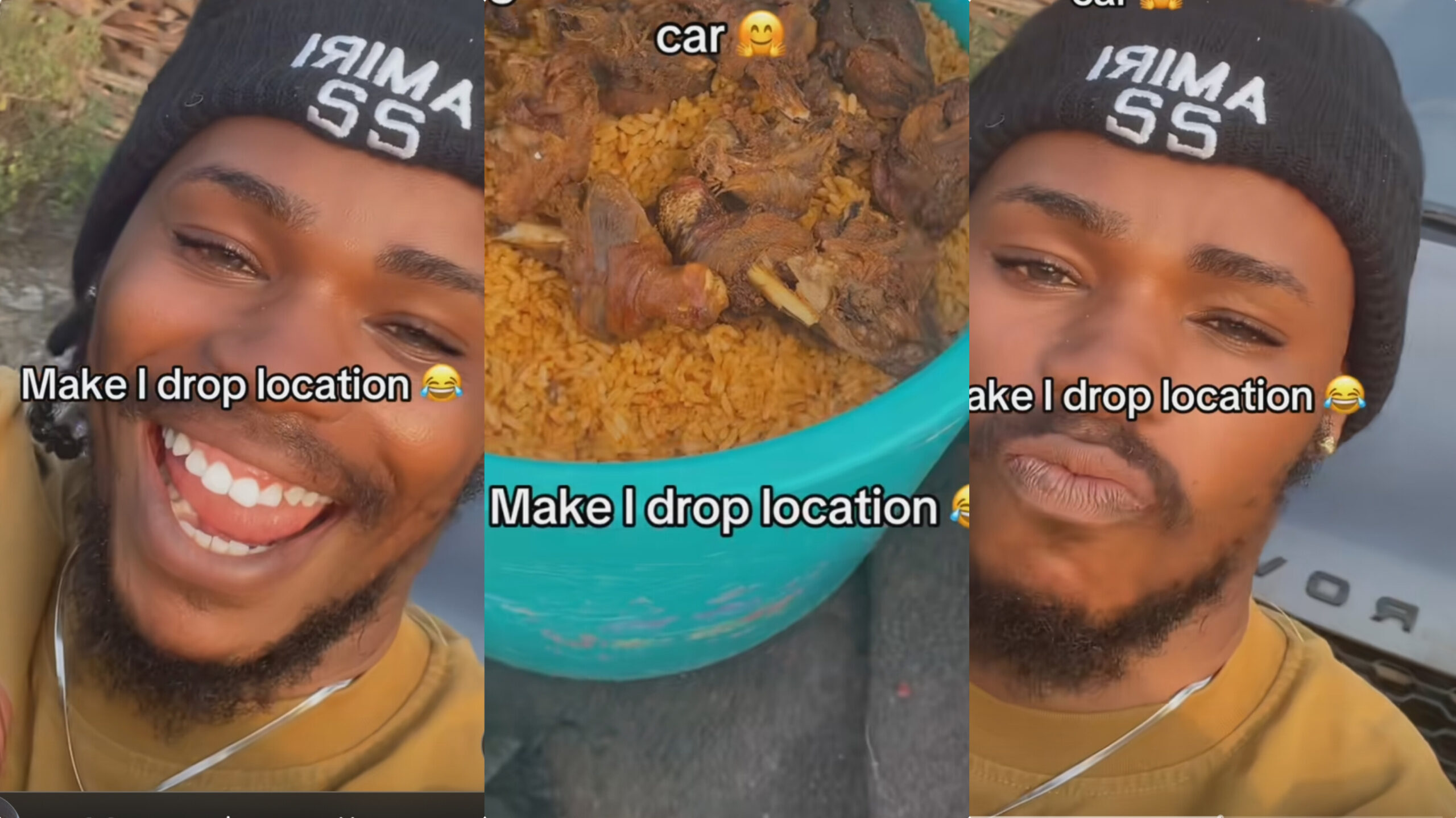 Nigeria man couldn’t contain his excitement after discovering a container of leftover rice in his car following a wedding.
