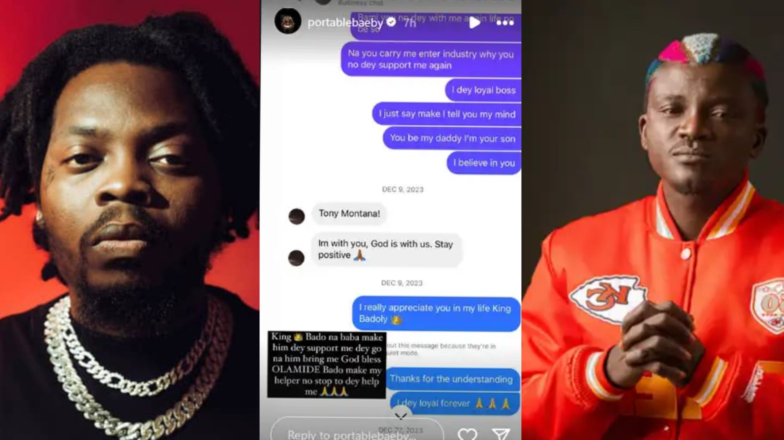 Portable’s message read: “Bado na baba. Make him dey support me dey go, na him bring me. God bless Olamide Bado. Make my helper no stop to dey help me.” (Translation: “Olamide is my father. He should continue to support me, he’s the one who brought me into the industry. God bless Olamide. Let my helper not stop supporting me.”)