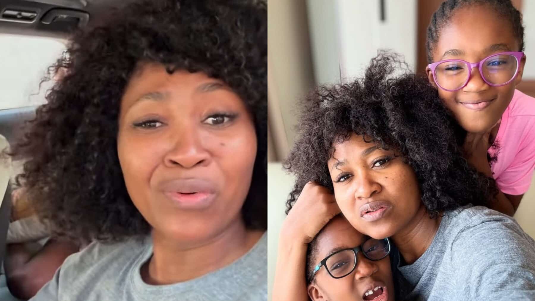 Nollywood actress and filmmaker Mary Njoku has shared a funny conversation she had with her daughter in the car. The mother of three was driving her kids to an unknown destination when she started recording their conversation.