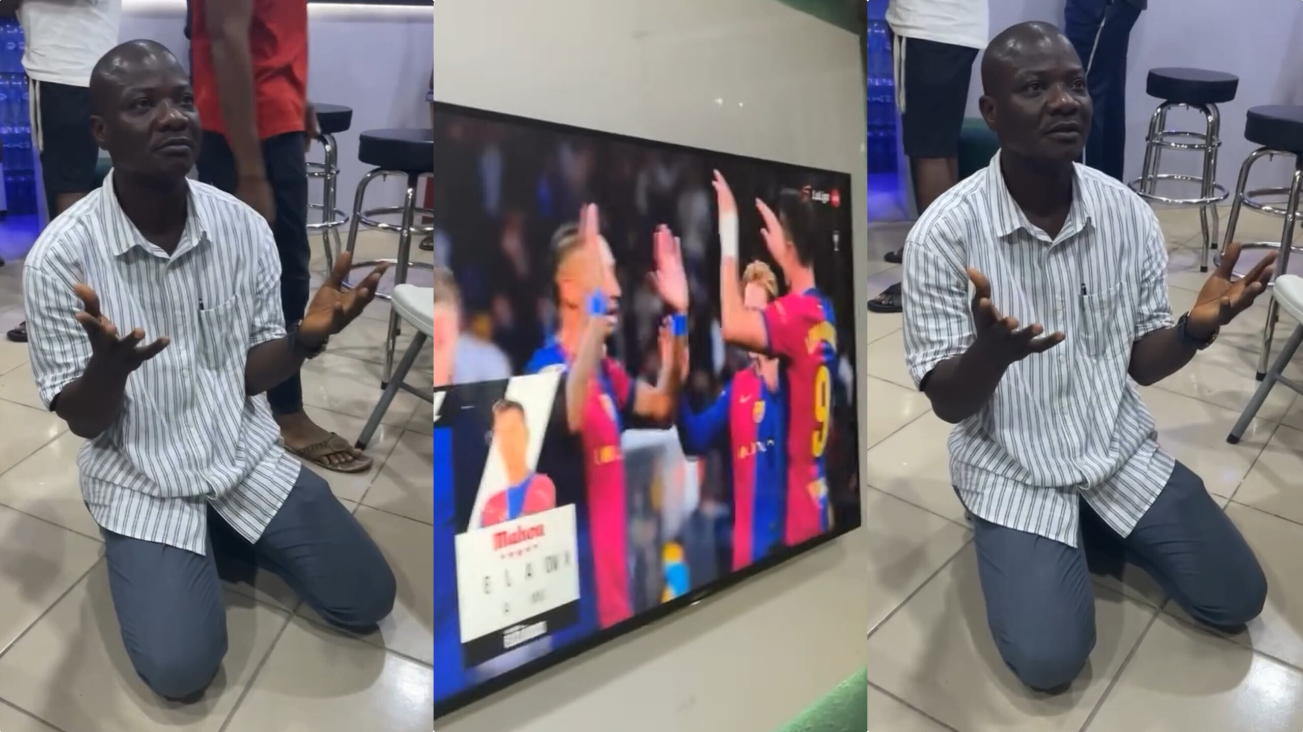 The man can been seen on his knees being greatful to his religion after a massive win of 10million naira.