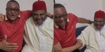 Nollywood veterans Jide Kosoko and Pete Edochie recently reunited after 12 years, sharing a heartfelt moment that has captivated fans. The emotional encounter was filled with cultural significance and mutual respect, as the two legends exchanged traditional Igbo handshakes and warm embraces.