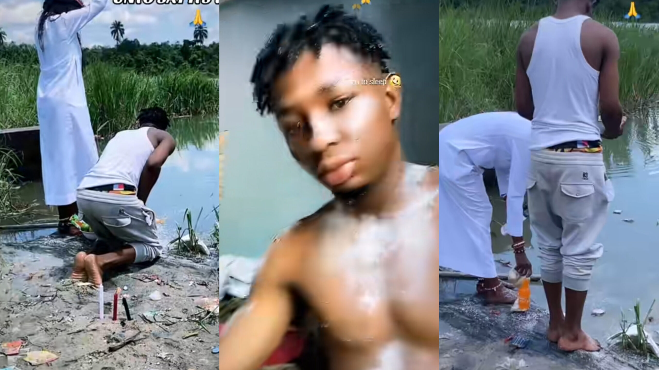 A Nigerian man has ignited a social media frenzy after sharing a video of his spiritual battle against poverty, taking his efforts to an unconventional and extreme level Ritual.