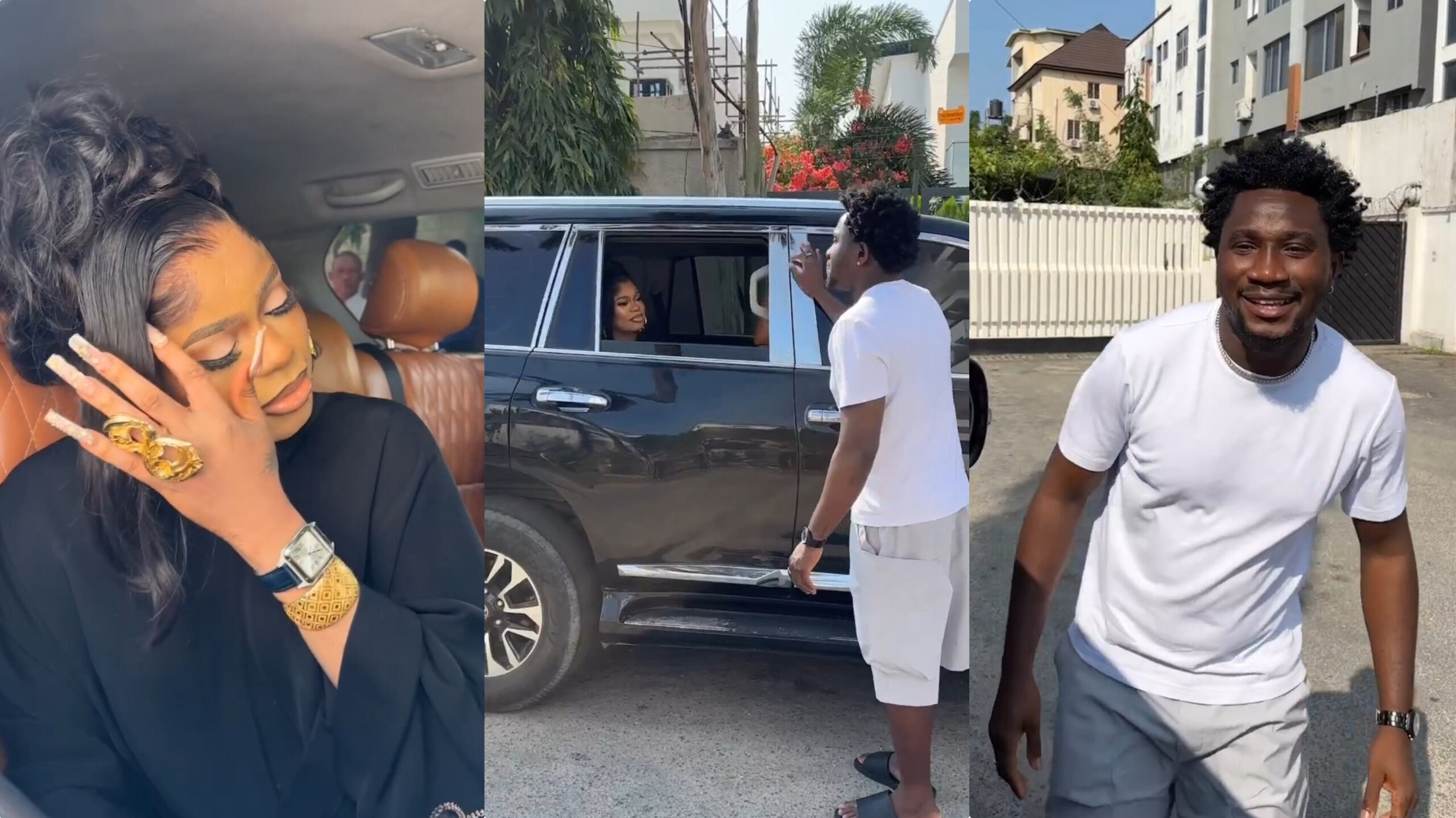The video, which has gone viral, shows Bobrisky wearing black inside her car car calling nasboi hey dear,.
