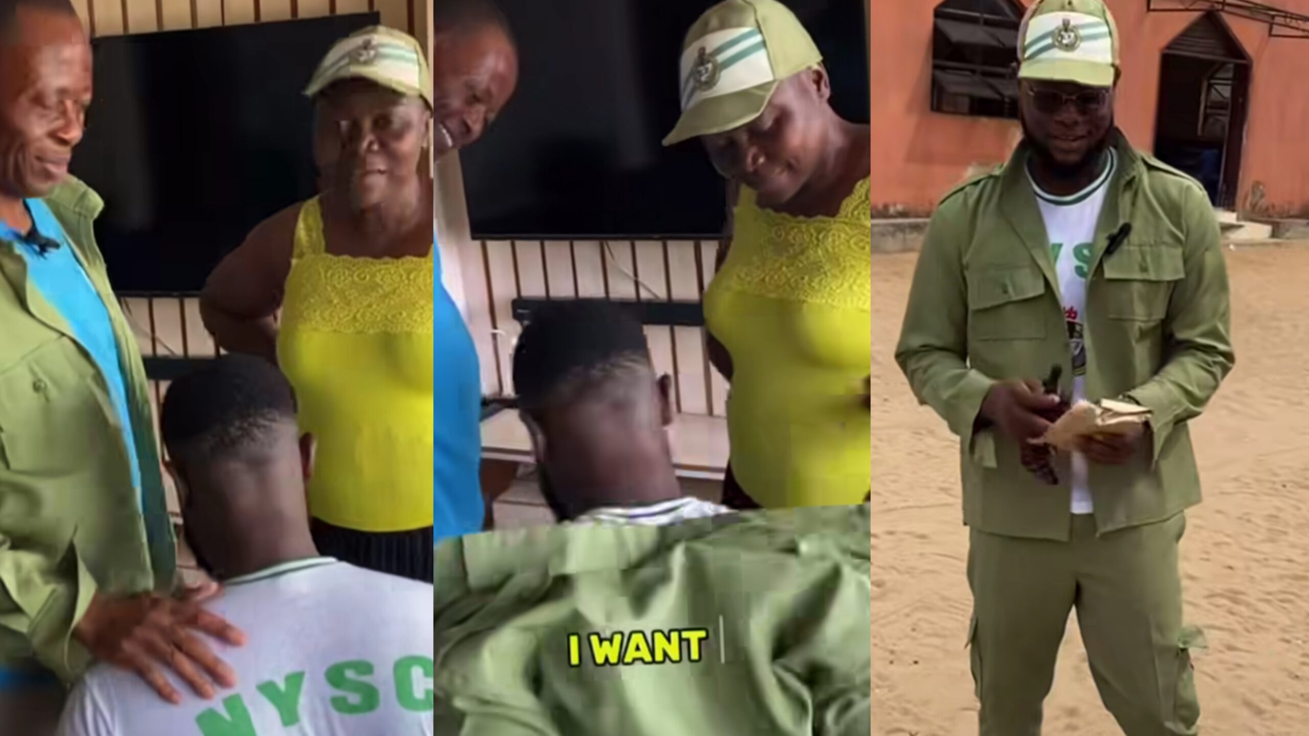 In the emotional video, the young man is seen walking into his parents’ home, dressed in his full NYSC uniform, carrying a brown envelope stuffed with cash. His parents are visibly surprised and overwhelmed with joy, and the atmosphere is filled with love and gratitude.