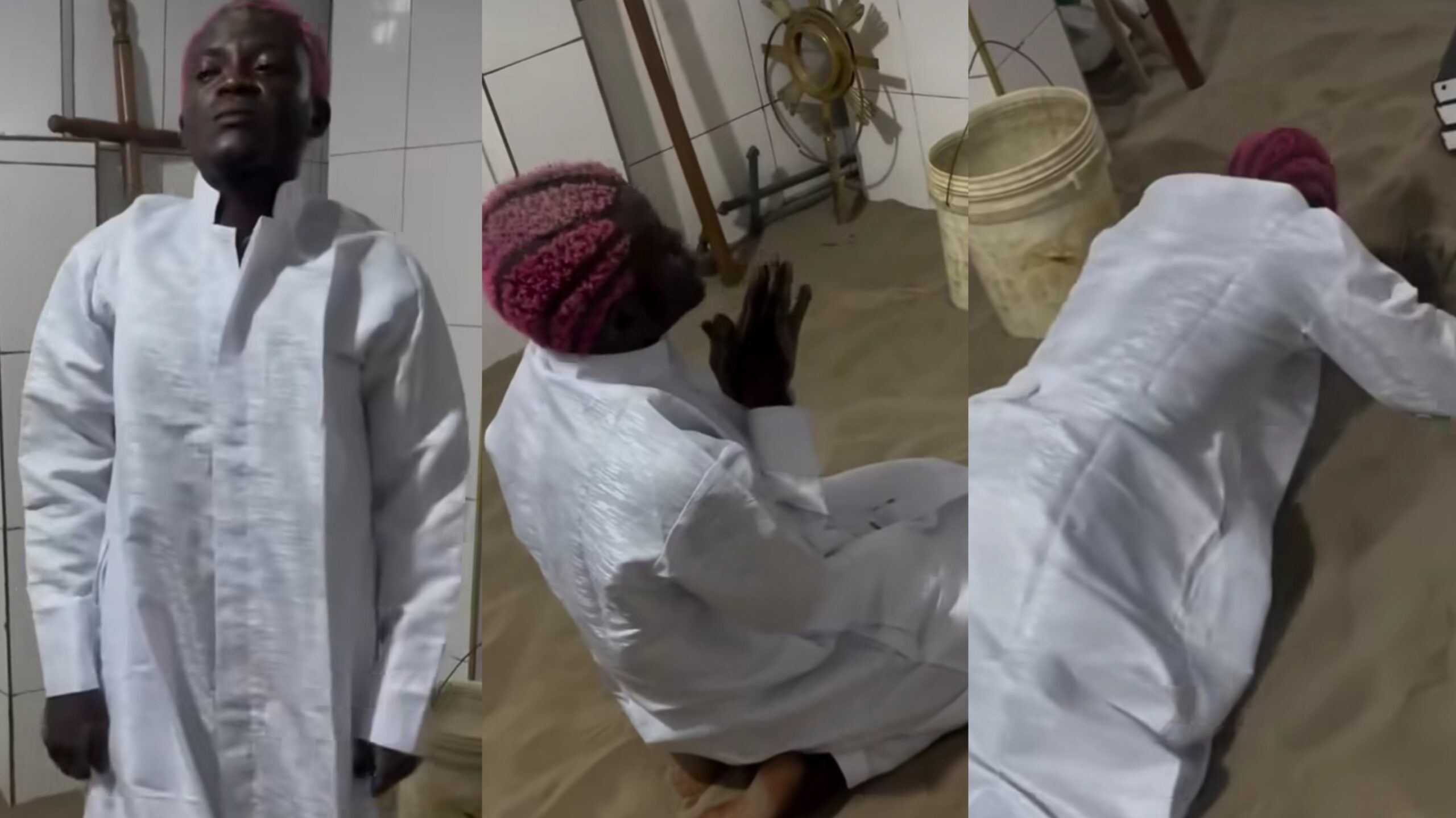 In a viral video, Portable is seen dressed in a white robe, fervently praying for spiritual guidance and protection. This sudden display of piety has raised eyebrows among netizens, with many questioning the sincerity of his actions.