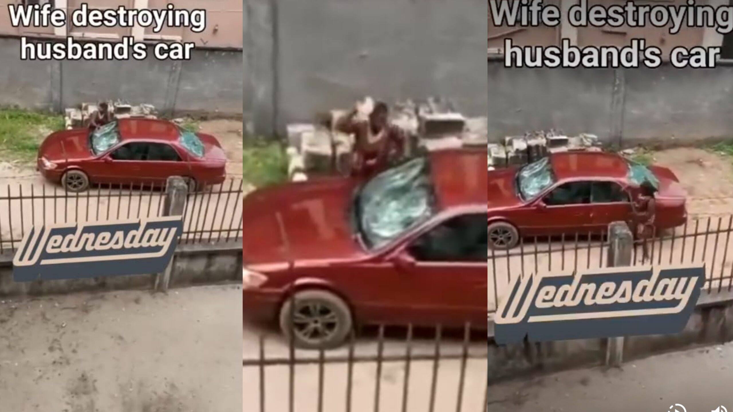 A shocking video has surfaced online, showing a wife using a stone to smash the windscreen of her husband’s car. The incident, which has gone viral on social media, has sparked widespread controversy and debate.