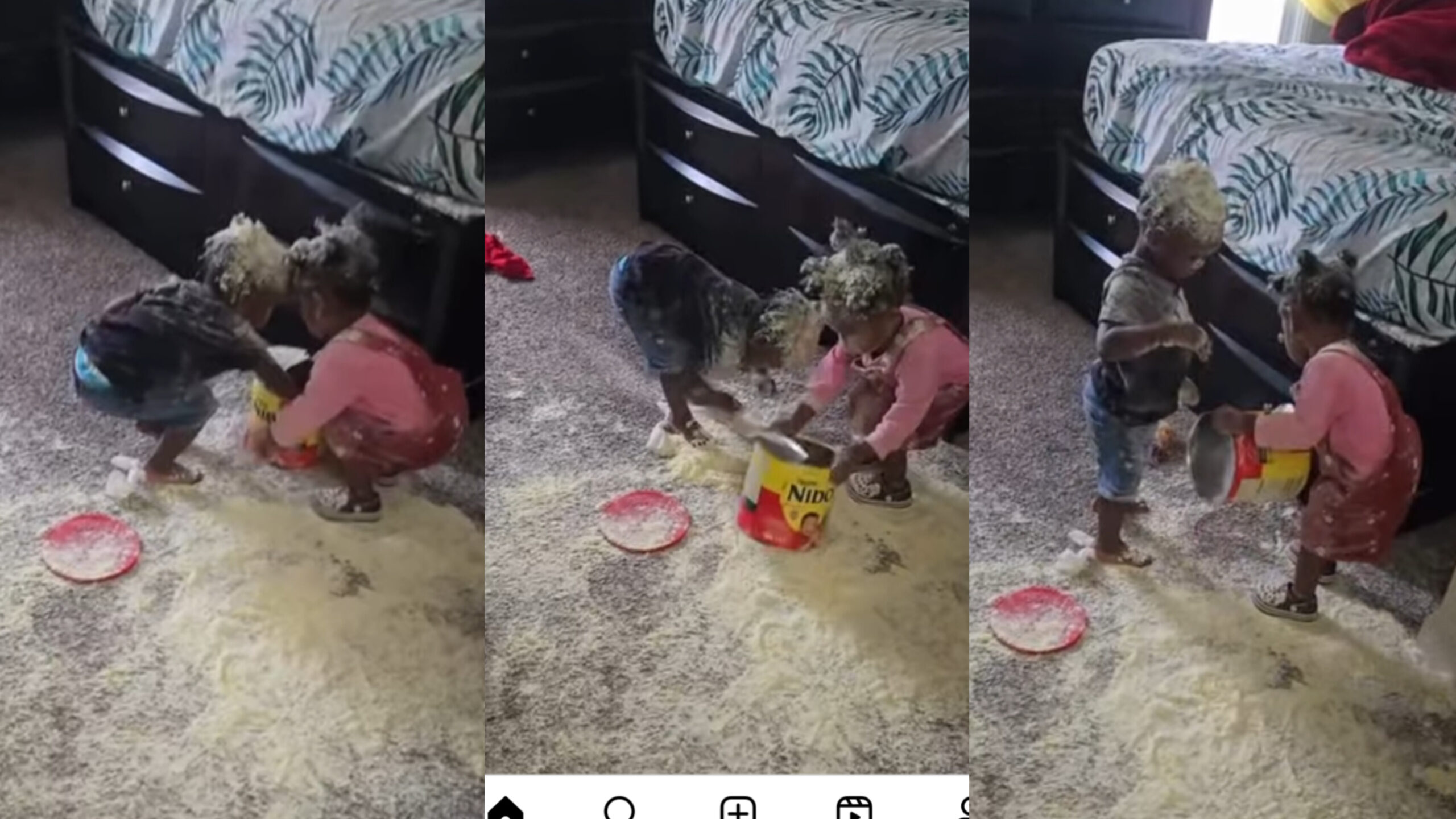 The other toddler, completely on board with this “plan,” joins in with gleeful enthusiasm, tossing items around with abandon. It’s pure comedy as they explore the limits of what’s possible in their little world.Watching this chaotic scene unfold, it’s hard not to laugh. The toddlers have no concept of cleaning up or order, but they certainly have mastered the art of turning a simple room into a funhouse of disarray.