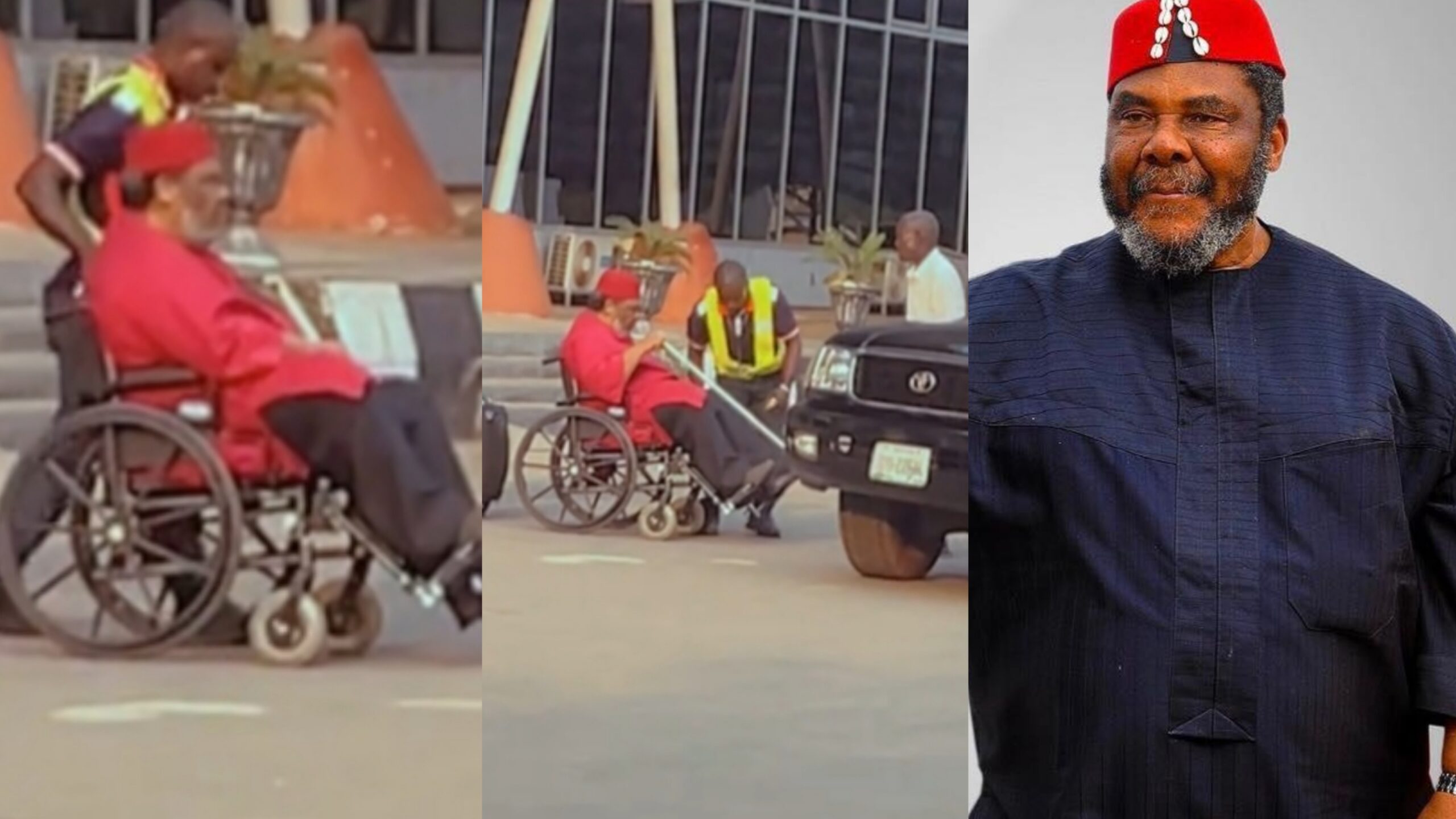 Legendary Nollywood actor Pete Edochie has sparked concern and curiosity among his fans after a video showed him being pushed in a wheelchair at an airport. However, the 76-year-old actor quickly dispelled any worries by standing up and walking to his car, leaving everyone stunned.