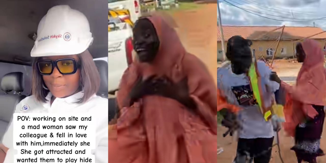 The video, which has gone viral on TikTok, was shared by a woman who witnessed the scene unfold at a worksite. According to her, the mentally ill lady became smitten with her colleague as soon as she laid eyes on him, openly professing her love and even asking him to play hide-and-seek.